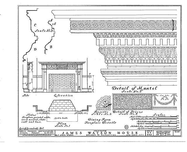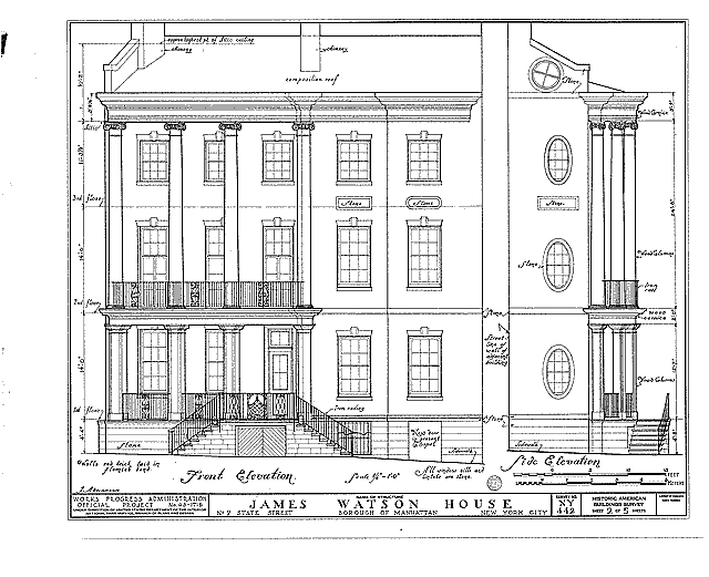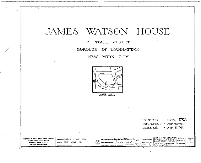 Situada en la zona Sur de Manhattan, al borde de Battery Park y en el 7 de State Street se encuentra la antigua casa del Senador por el Estado de Nueva York y comerciante James B. Watson. Es la única casa que sobrevive de las elegantes casas Federales situadas en primera linea del muelle.Como otros comerciantes del siglo XVIII y principios del XIX en la ciudad de Nueva York, Watson prefirió vivir cerca del río de forma que no tuviera ninguna obstrucción visual sobre los muelles del puerto de cara a sus intereses mercantes.