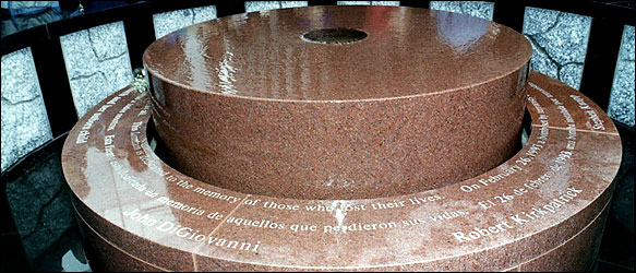 Una fuente obra del escultor Elyn Zimmerman, erigida en memoria a las víctimas del atentado con bomba que tuvo lugar también en el WTC en 1993.