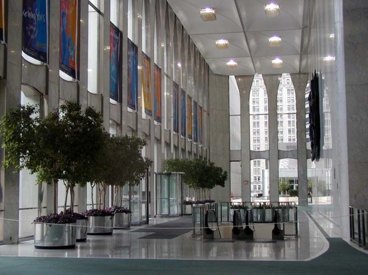 En el lobby de la Torre 2, un inmenso tapiz de 6,10 de alto por 10,67 de ancho nos daba la bienvenida. Se trataba de The World Trade Center Tapestry (1974), tejido en lana y cáñamo, obra de Joan Miró.