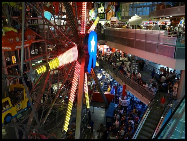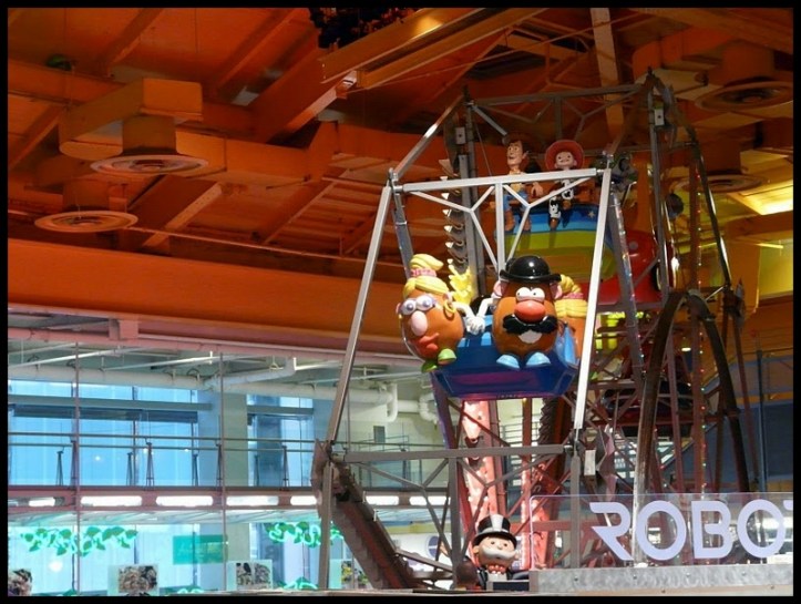 Nada más entrar nos encontramos con una noria (Ferris wheel) de 20 m de altura. Sus 14 cestas están decoradas con personajes de películas infantiles, la gran mayoría de Toy story. Los niños pueden subir a la noria previo pago de 4$.