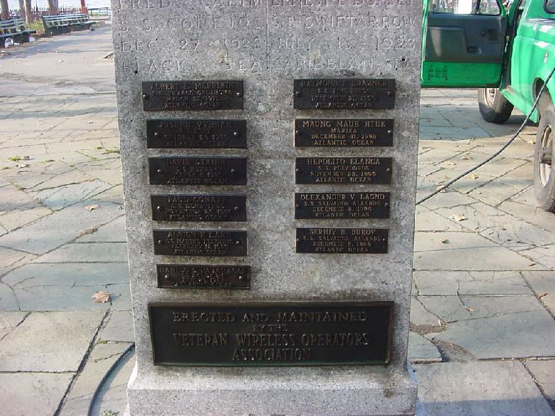 «Erigido en memoria de los operadores inalámbricos desaparecidos en el mar durante el cumplimiento de su deber»