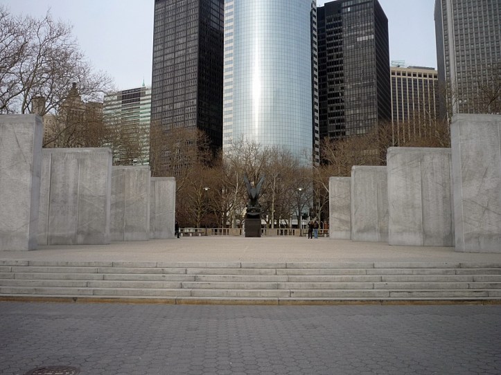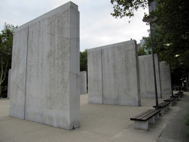 Este memorial, diseñado por la firma arquitectónica de Gehron y Seltzer, está orientado hacia la estatua de la libertad y se compone de 8 bloques de 5,8 metros de altura.