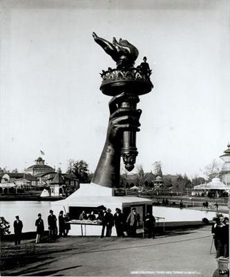 Durante la Exposición Universal de Filadelfia de 1876, se expuso la  antorcha de la estatua. Si pagabas  50 céntavos te permitían subir al balcón de la antorcha. Era una forma de  recaudar fondos destinados a la construcción del pedestal del monumento.