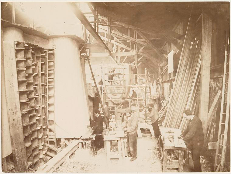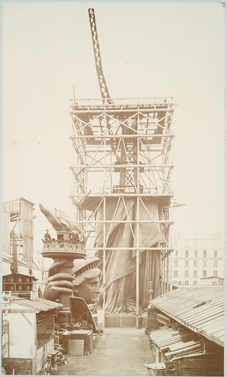 En julio de 1884, la estatua se montó completamente en París, para comprobar que las piezas ensamblaban correctamente. Como en Nueva York aún  no se había terminado de construir el pedestal por falta de fondos, permaneció  en la capital francesa hasta 1885.