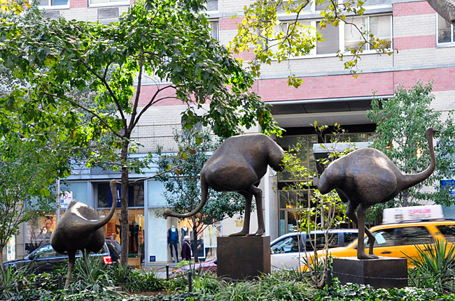 La exposición comienza en Columbus Circle, el inicio de los centros comerciales de Broadway, con la escultura, de tamaño natural, «Par de elefantes». Una colección de animales de bronce compuesta por ovejas, avestruces, cuervos, gallinas, toros… han ocupado el tramo de Broadway comprendido entre Columbus Circle y la calle 168.