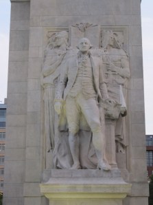 Finalmente, en 1916, se colocó en el lado izquierdo, la estatua denominada Washington at War (Washington en la guerra) y dos años más tarde, se colocó en el lado derecho la estatua llamada Washington at Peace (Washington en la Paz).