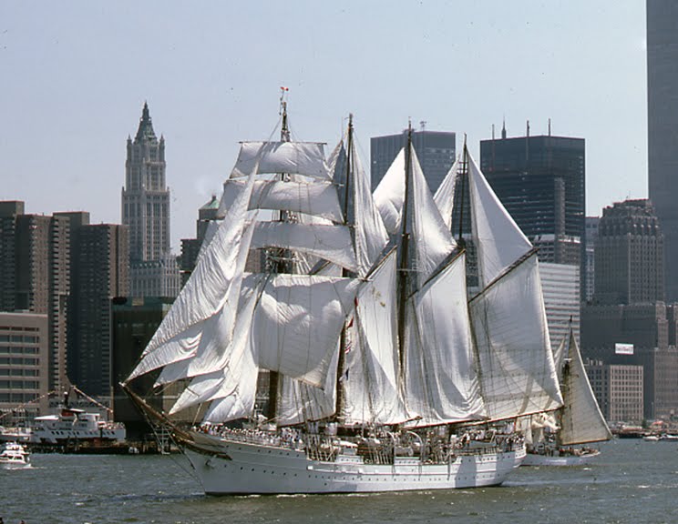 Uno de los barcos que participan en la parada naval es el Juan Sebastián de Elcano, (buque escuela de la Armada Española).