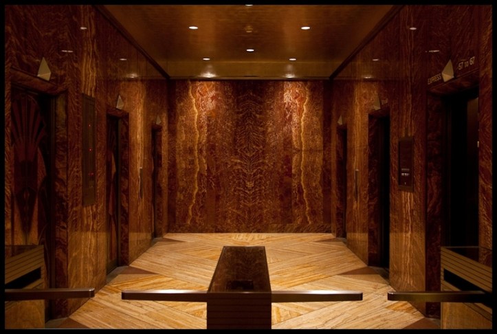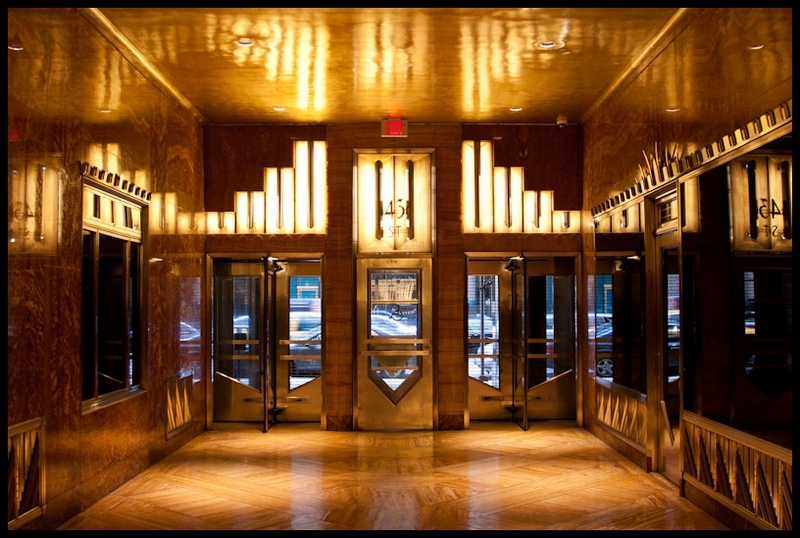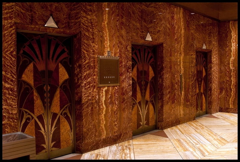 La decoración del vestíbulo principal del edificio Chrysler, situado en la intersección de la Calle 42 con Lexington Avenue, es digna de admiración: lámparas de araña, azulejos, ornamentos fabricados en acero inoxidable. Todo ello al más puro estilo Art Deco.