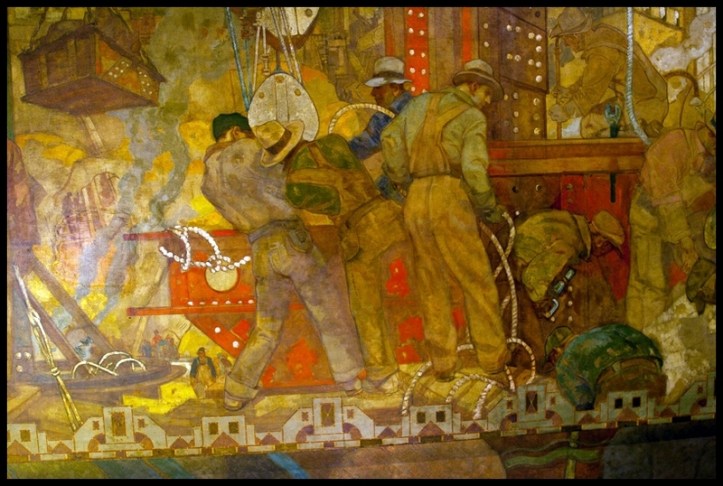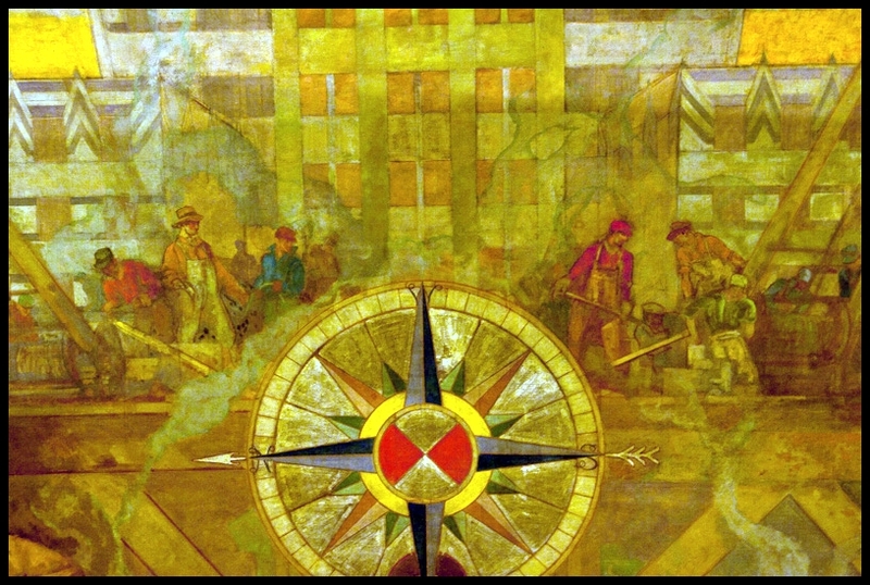 El propio edificio Chrysler aparece representado en uno de los murales.