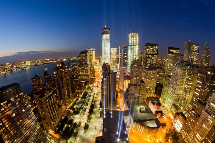 Este es el impresionante aspecto que presenta la zona del World Trade Center. «Tribute in Light 9/11» , un recuerdo a las víctimas del atentado contra las Torres Gemelas perpetrado el 11 de septiembre de 2001.