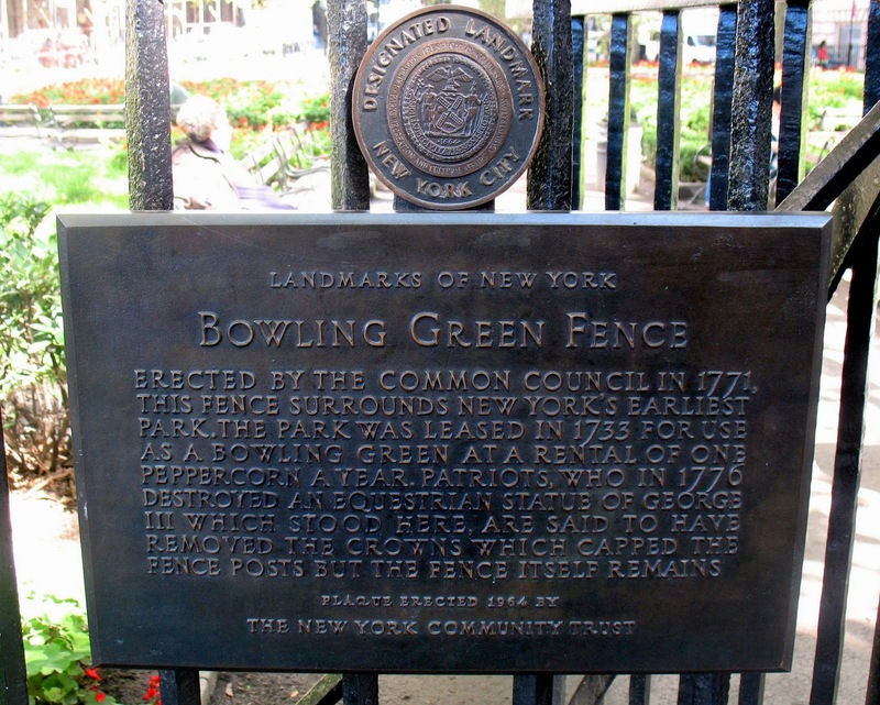 En 1770, el Gobierno británico erigió,en el centro de Bowling Green una estatua ecuestre del rey Jorge III, fundida en plomo. Cuando las relaciones entre el Gobierno británico y los colonos se deterioraron, la valla que rodea el parque fue construida para proteger la estatua de posibles actos vandálicos.