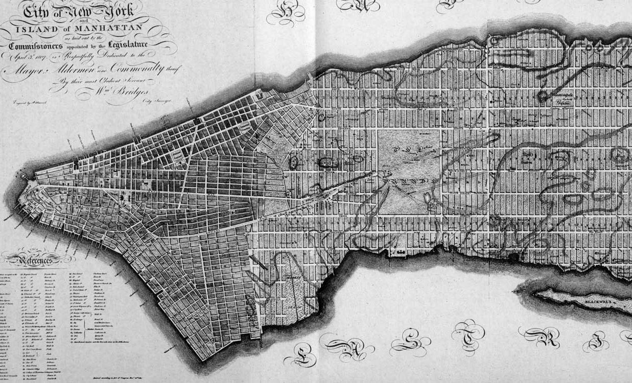 El 22 de marzo de 1811, se aprueba el plan urbanístico por el que las calles de Manhattan formarían una cuadrícula perfecta: Doce avenidas recorrerían de norte a sur la isla, siendo cortadas en ángulos rectos por 155 calles.
