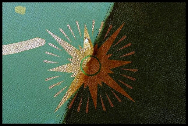 Para dejar constancia del trabajo realizado durante la restauración se decidió conservar un pequeño rectángulo sin limpiar. Lo podemos ver justo debajo de la constelación de Cáncer, por encima del balcón este.