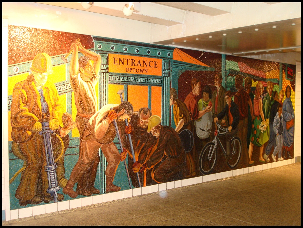 «El regreso de la primavera» representa a trabajadores de la construcción y otros neoyorquinos situados frente a un quiosco de metro IRT original. «La llegada del invierno» muestra un grupo de personas (algunos de ellos amigos del artista) observando la grabación de una escena. En el horizonte se ven los primeros copos de nieve.