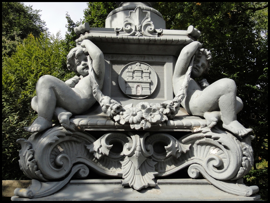 La lámpara, diseñada por el escultor hamburgués Carl Borner, se asienta sobre una base de piedra decorada con querubines, guirnaldas y otros elementos decorativos (como el escudo de la ciudad de Hamburgo). A pesar de que su interior es hueco la lámpara tiene un peso de 545 Kilogramos.