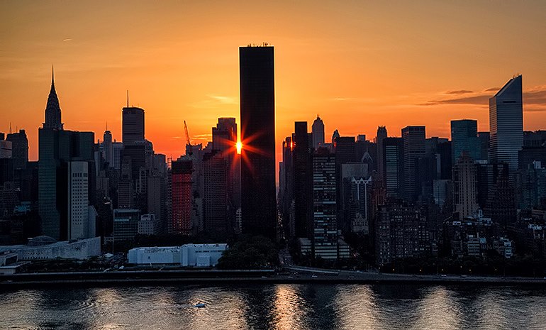 Solo dos veces al año, en los meses de mayo y julio, el Sol se alinea perfectamente con la cuadrícula que forman las calles de Manhattan. El fenómeno fue bautizado con el nombre de ‘Manhattanhenge’ por el astrofísico Neil deGrasse Tyson, por su similitud con el que se produce en el monumento megalítico de Stonehenge durante los solsticios.