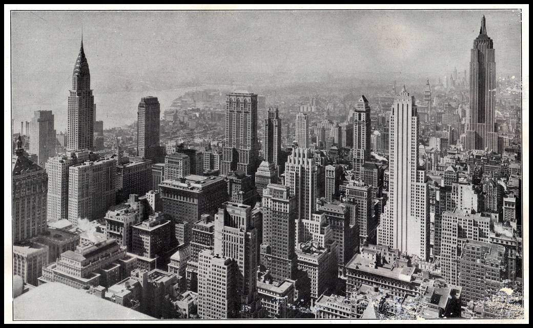 Éste era el skyline de Midtown Manhattan durante los años 30 del pasado siglo. De izquierda a derecha, y sobresaliendo entre el resto, los edificios: Chrysler (1930), Graybar (1927), Chanin (1927), Lincoln (1930), 500 Fifth Avenue (1931) y Empire State (1931).