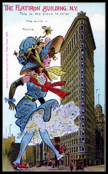 Esta circunstancia provocaba una curiosa situación durante los primeros años de vida del rascacielos. Debido a las corrientes, el viento hacia volar los sombreros y elevaba las faldas de las damas. Por este motivo, los mirones de la ciudad se reunían en la esquina de la calle 23. La situación llegó a tal extremo que incluso la policía tuvo que intervenir, expulsando a los mirones al grito de “23 skidoo”(skidoo era una expresión de la época equivalente a lárgate y 23 por la calle).