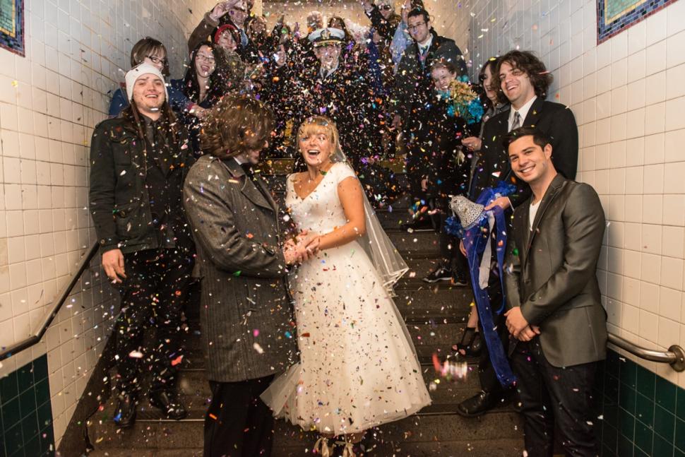 Los novios y su sequito abandonaron el metro en la estación de Canal Street para continuar con la celebración.