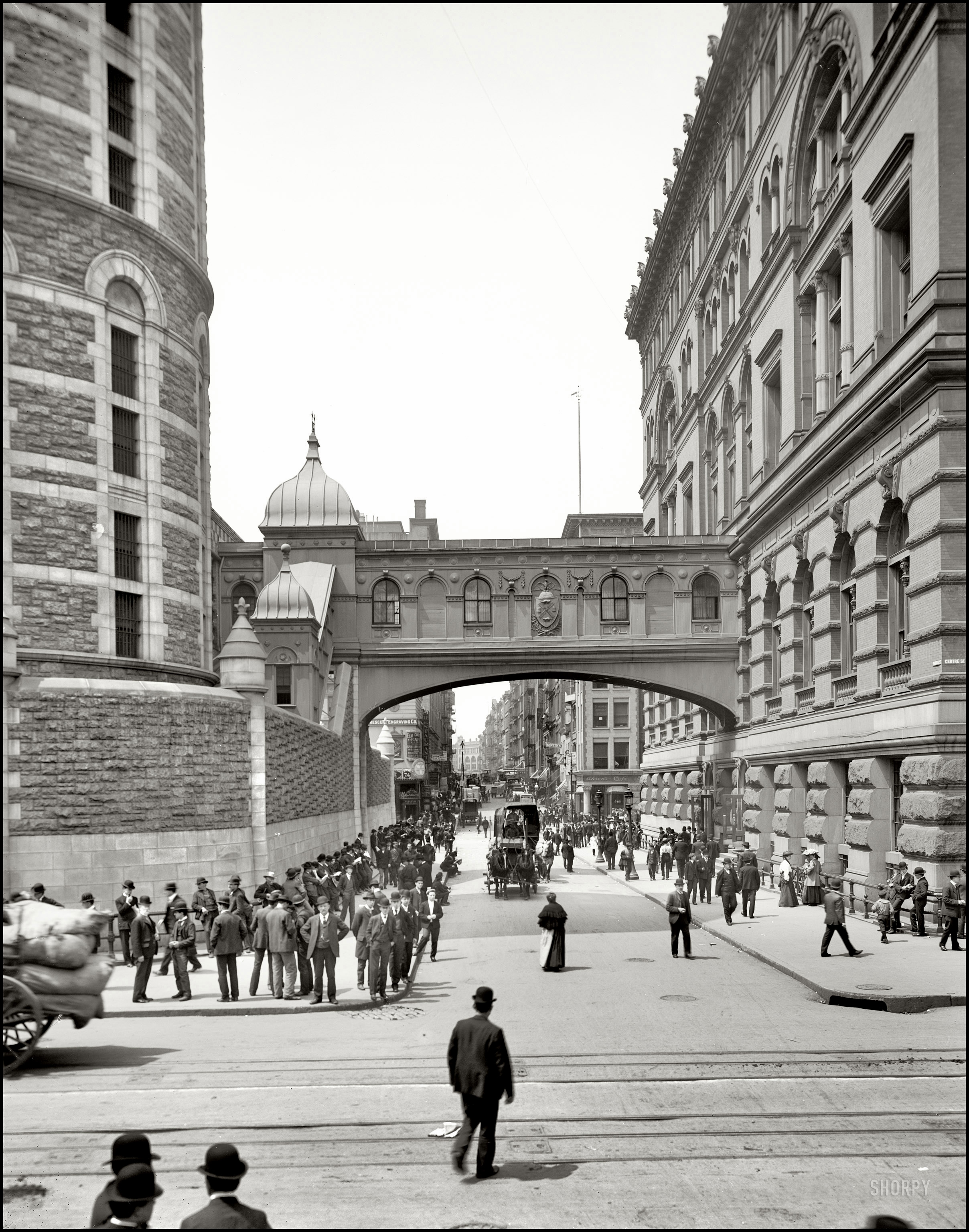 Nueva York también tuvo su propio Puente de los Suspiros. Al igual que en la ciudad italiana, comunicaba el edificio del Tribunal penal con la prisión, delimitada por las calles Center, Franklin, Elm, y Leonard.