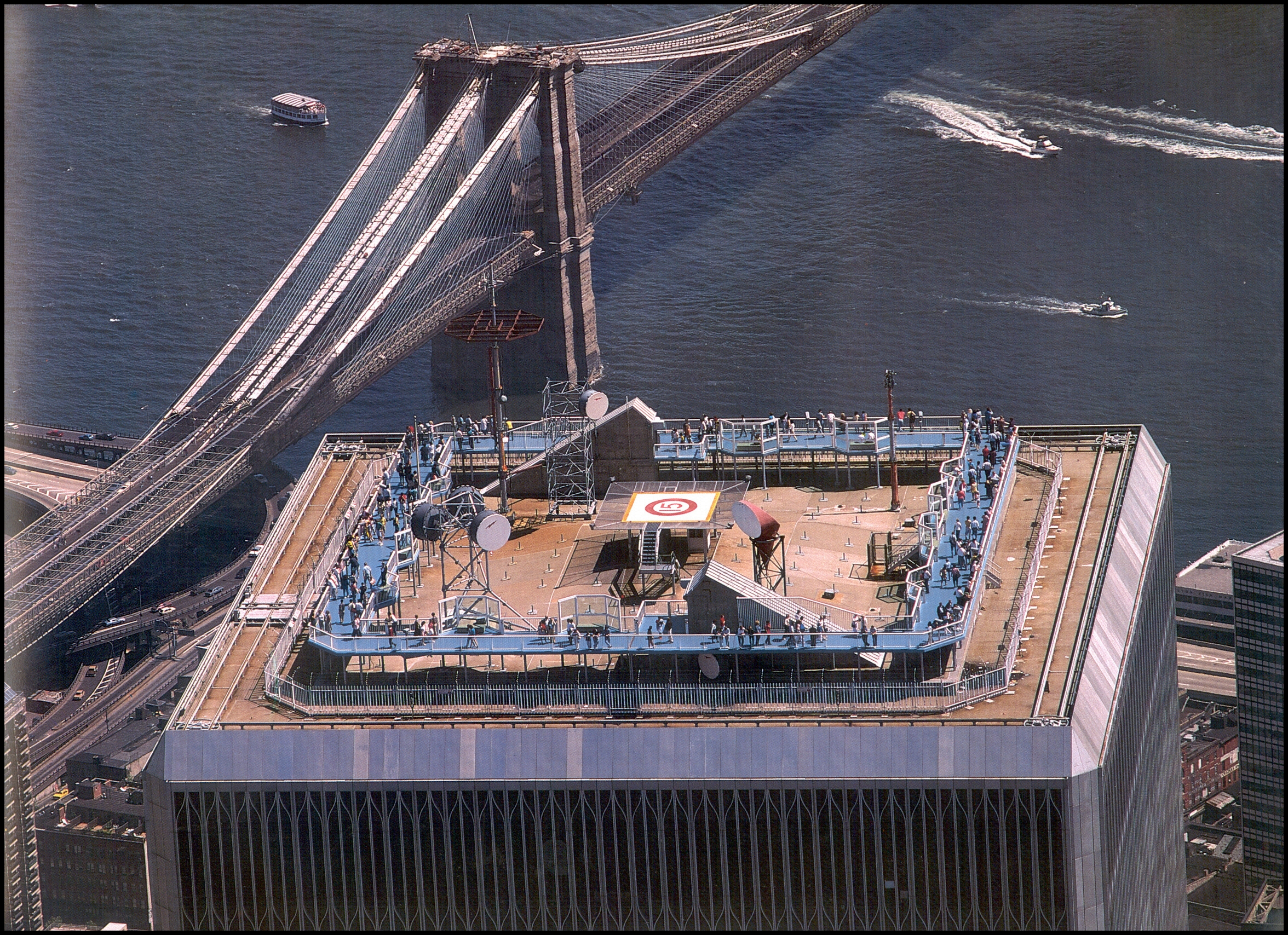 La fotografía corresponde al observatorio superior. situado en la WTC2 (Torre Sur). Este mirador se abría al público solo cuando las condiciones meteorológicas lo permitían. Existía un mirador cubierto en la planta 107.