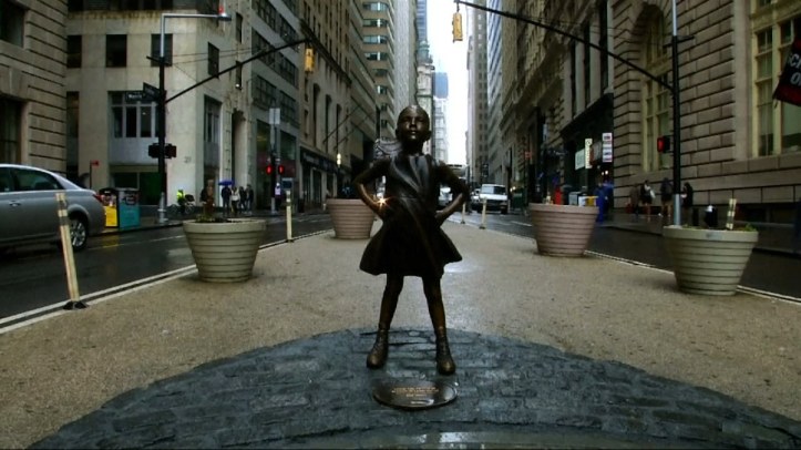 La estatua, instalada el 7 de marzo de 2017, vispera del Día Internacional de la Mujer, es una iniciativa de State Street Global Advisors, una gran firma de inversiones estadounidense decidida a llamar la atención sobre la brecha de género en el mundo de los negocios. En un comunicado, la firma instó a las empresas a incorporar a más mujeres en los Consejos de Administración y recalcó que las compañías con diversidad de género en su dirección son más rentables.